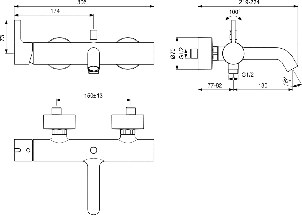 Ideal Standard Joy Bateria wannowo-natryskowa ścienna Chrom BC786AA