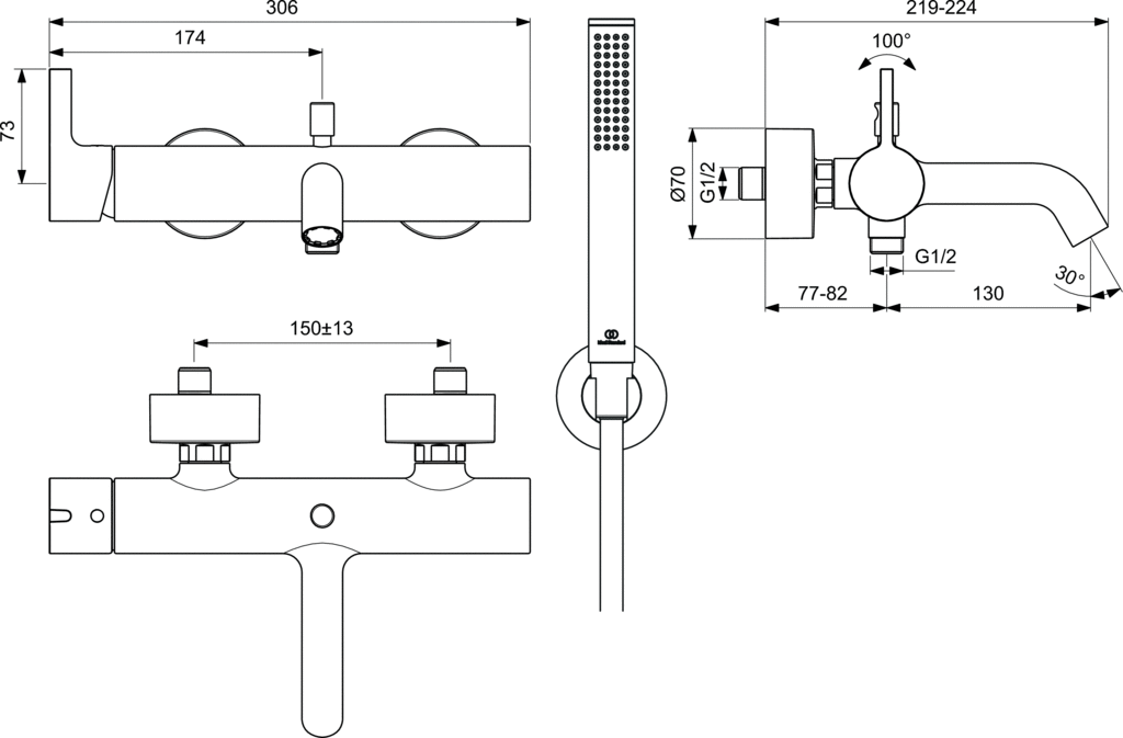 Ideal Standard Joy Bateria wannowo-natryskowa ścienna z zestawem natryskowym Chrom BC787AA