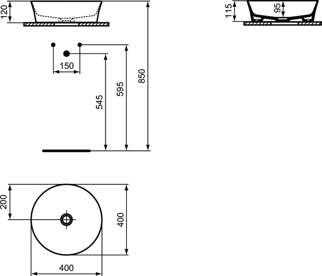 Ideal Standard Ipalyss Umywalka nablatowa okrągła Ø 400 mm Biały E139801