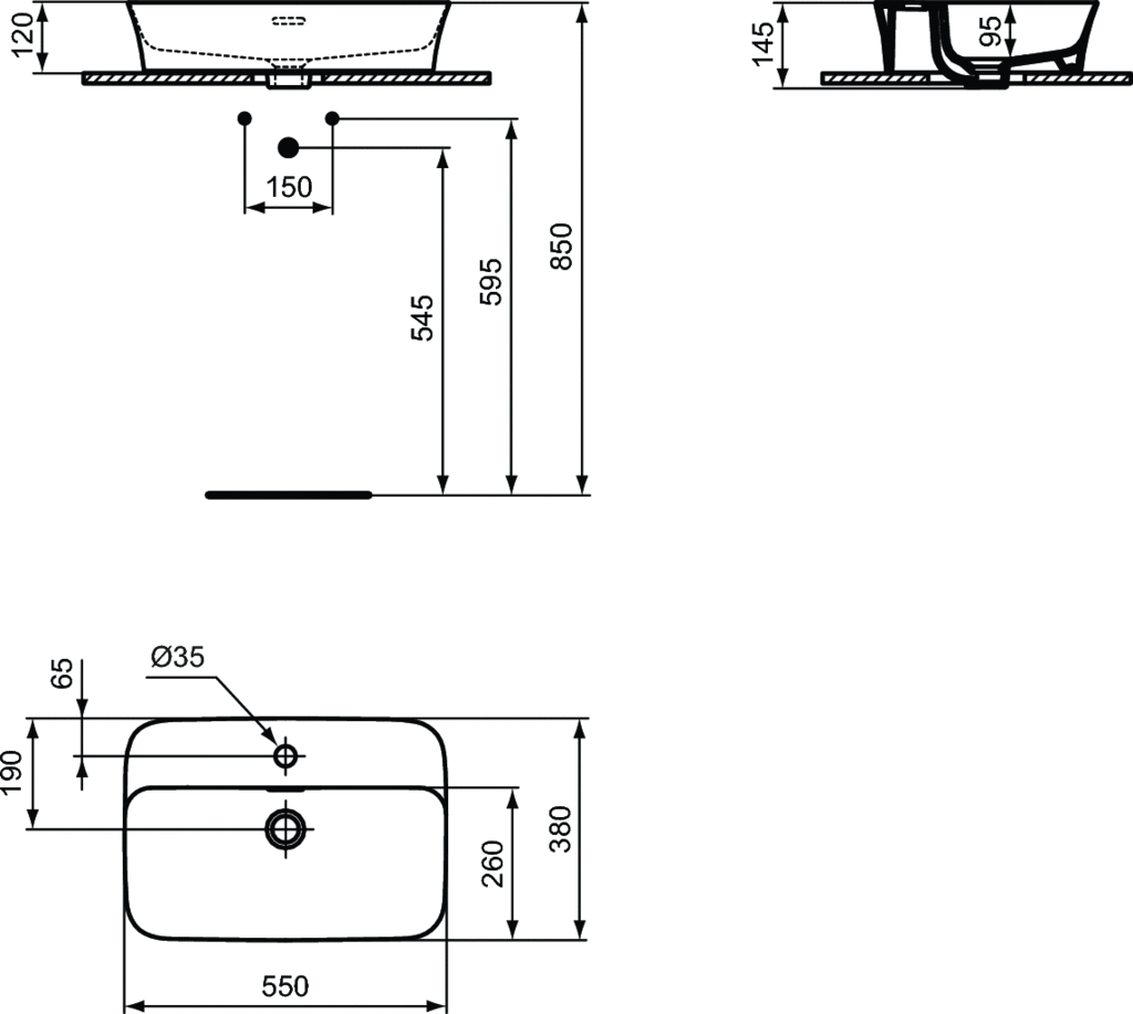 Ideal Standard Ipalyss Umywalka nablatowa 550x380 mm z przelewem Grenade E2077V6