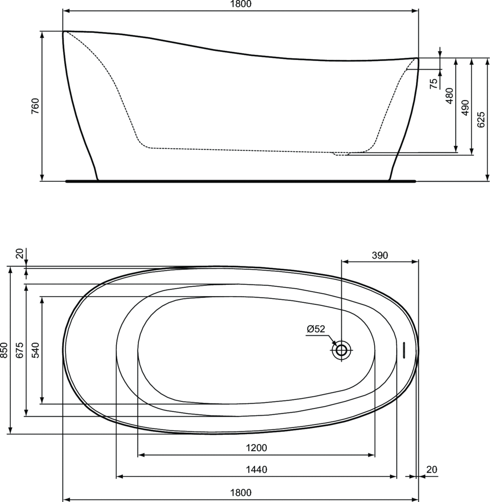 Ideal Standard Around Wanna wolnostojąca 1800x850 mm Biały/Czarny matowy K8715V2