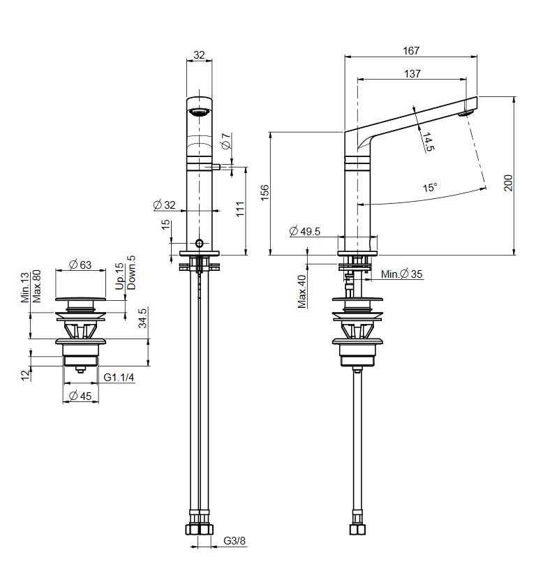 Carlo Frattini Collettivita Bateria umywalkowa elektroniczna z korkiem Chrom F4921CR