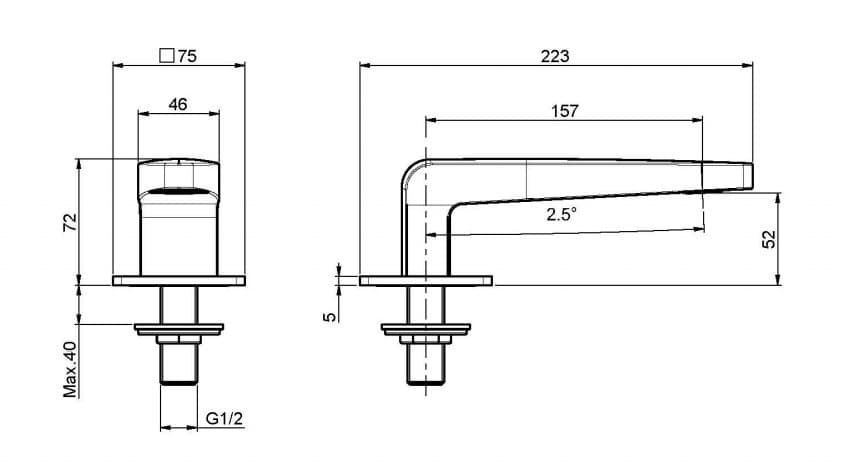 szerokość rozety: 75/75 mm