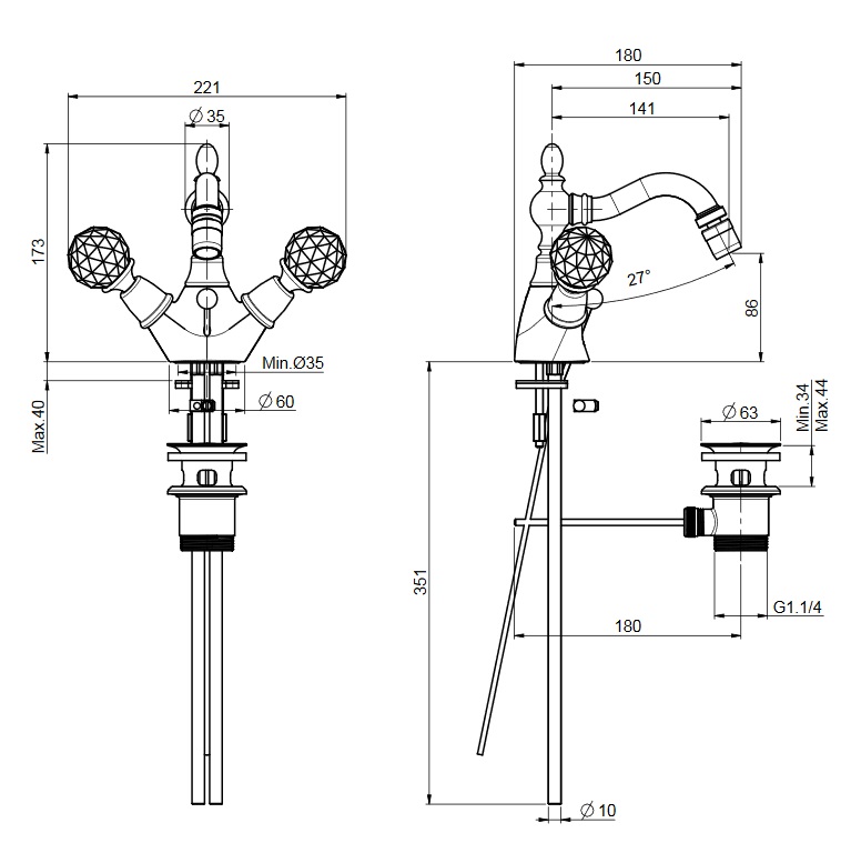 Carlo Frattini Elizabeth Chic Bateria bidetowa jednootworowa z korkiem automatycznym Chrom F5092CCR