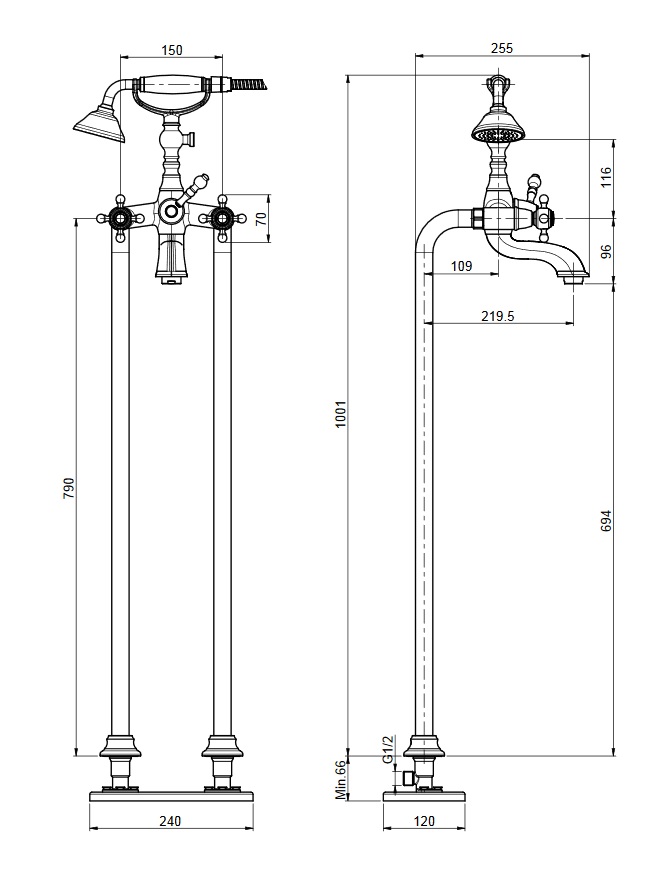 Carlo Frattini Elizabeth Bateria wannowa wolnostojąca ze słuchawką Chrom F5084/4CR