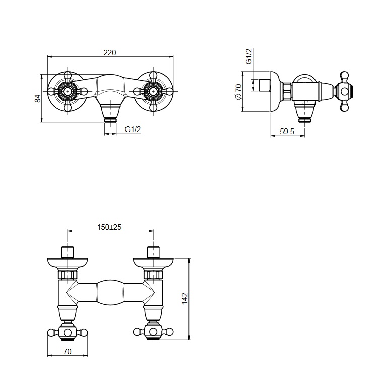 Carlo Frattini Elizabeth Bateria natryskowa ścienna bez słuchawki Chrom F5085/1CR