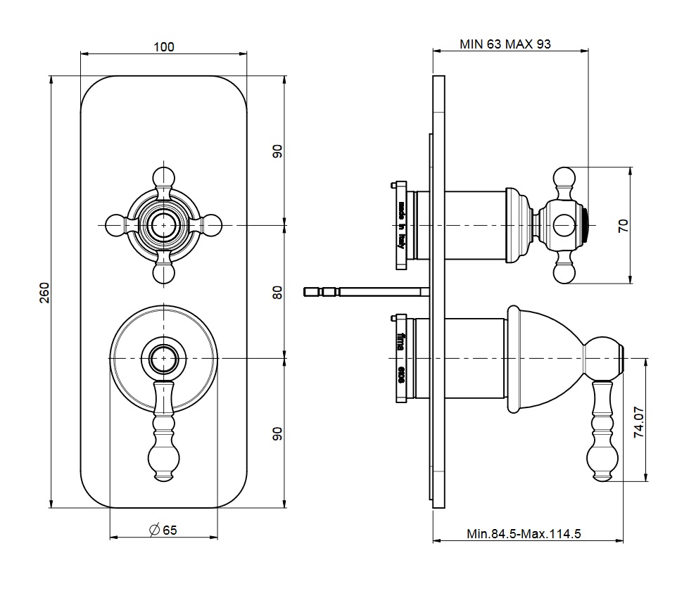 wysięg uchwytów: 84,5 - 114,5 mm