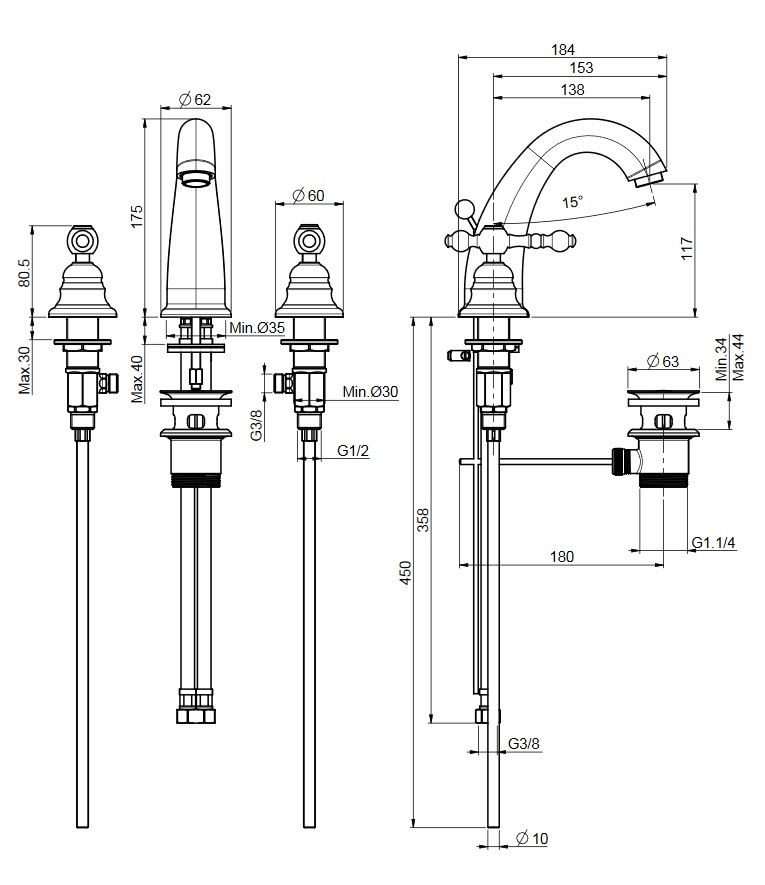 Carlo Frattini Epoque Bateria umywalkowa 3-otworowa z korkiem automatycznym Chrom F5071CR