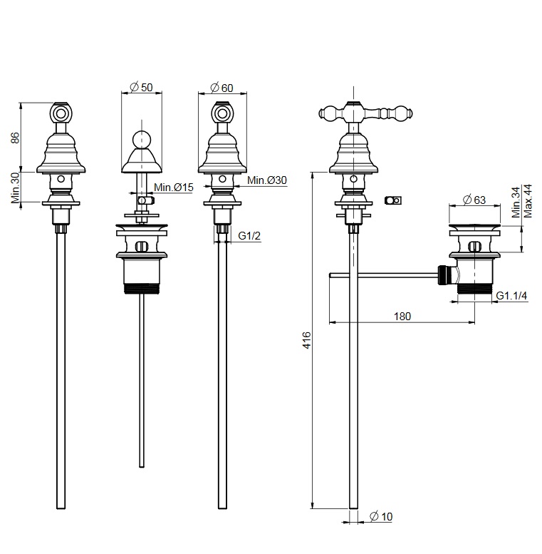 Carlo Frattini Epoque Bateria bidetowa 3-otworowa Chrom F5072CR
