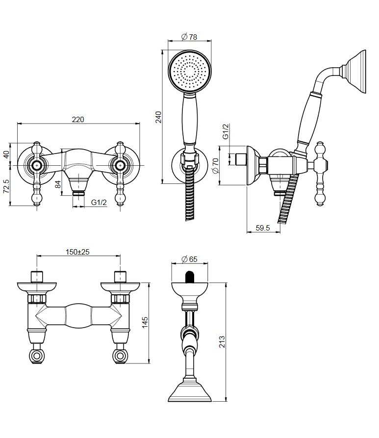 Carlo Frattini Epoque Bateria natryskowa ścienna ze słuchawką Chrom F5055CR