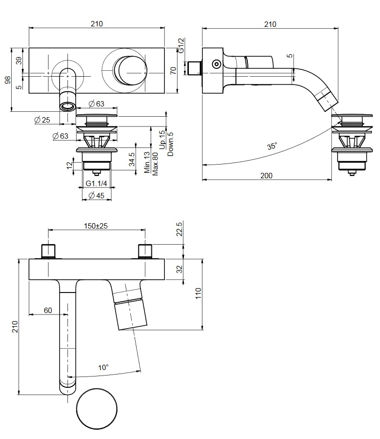 Carlo Frattini Fluid Bateria umywalkowa natynkowa z wylewką 20 cm Chrom F3861LCR