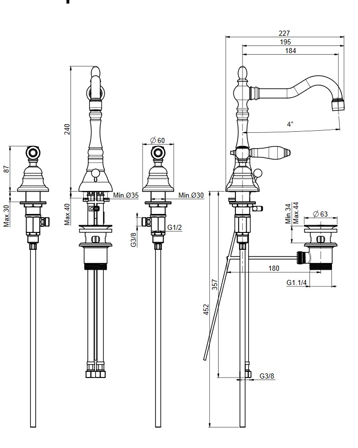 Carlo Frattini Herend Bateria umywalkowa 3-otworowa z ruchomą wylewką Chrom F5401CR