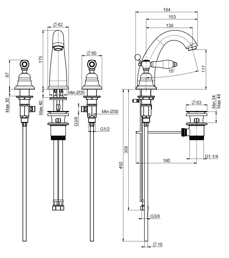 Carlo Frattini Herend Bateria umywalkowa 3-otworowa z korkiem automatycznym Chrom F5421CR