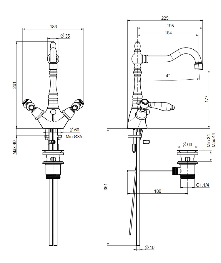 Carlo Frattini Herend Bateria umywalkowa z ruchomą wylewką Chrom F5411CR