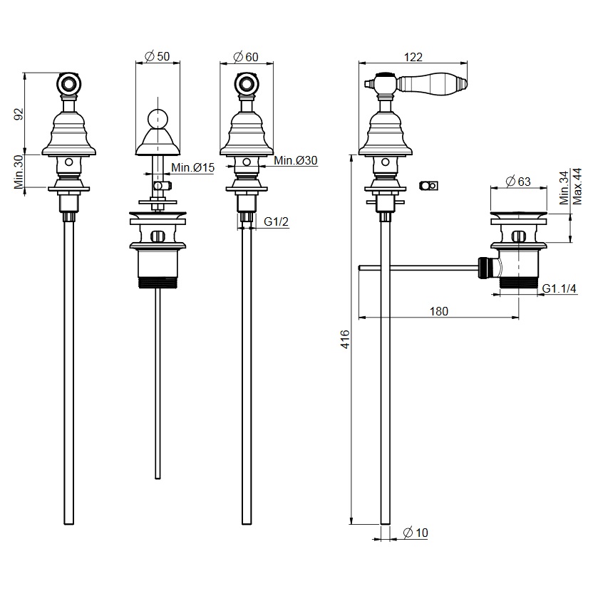 Carlo Frattini Herend Bateria bidetowa 3-otworowa z korkiem Chrom F5422CR