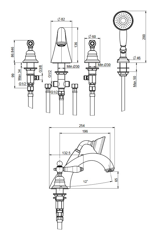 wysokość wylewki: 65 mm