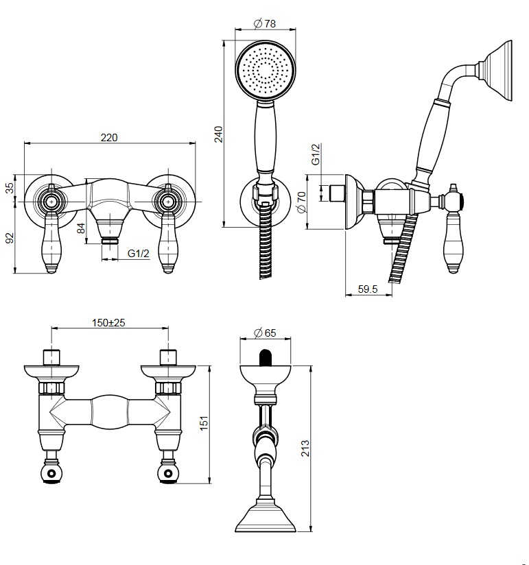 Carlo Frattini Herend Bateria natryskowa ścienna ze słuchawką Chrom F5405CR