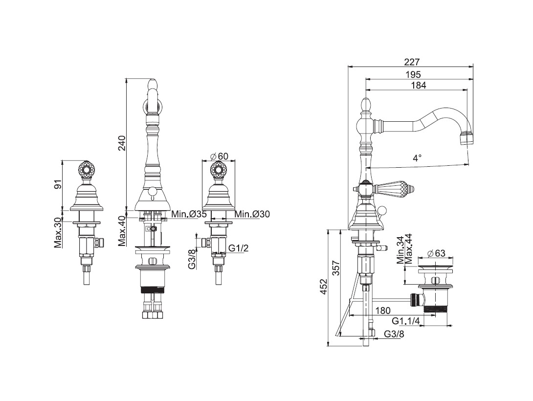 Carlo Frattini Herend Chic Bateria umywalkowa 3-otworowa z obrotową wylewką Chrom F5401CCR