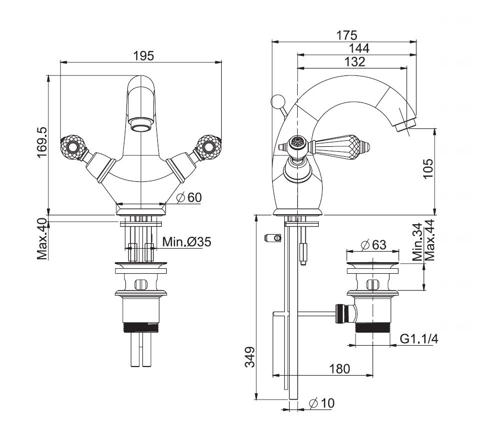 wysokość wylewki: 105 mm