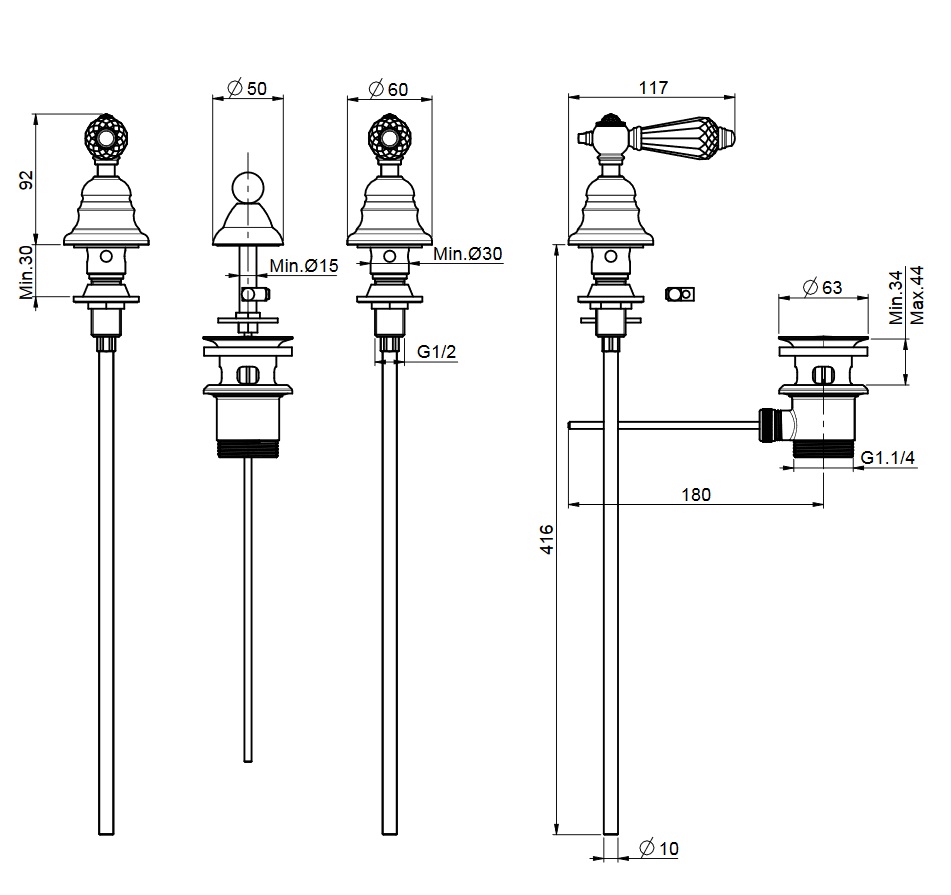 średnica rozety: 60 mm