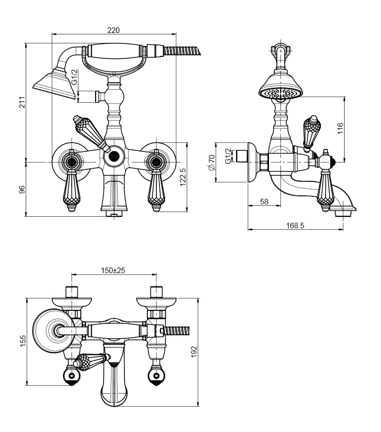 Carlo Frattini Herend Chic Bateria wannowa ze słuchawką prysznicową Chrom F5404CBCR