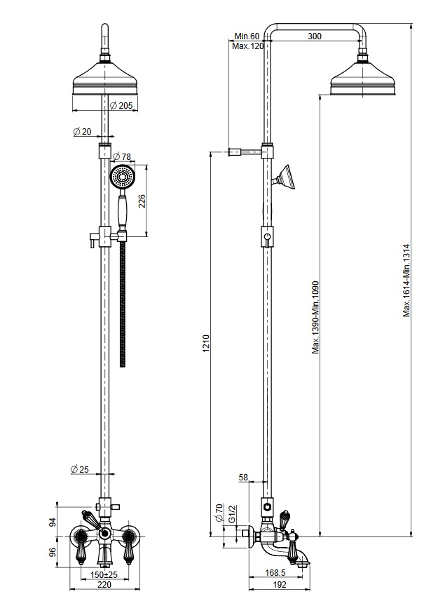 wysokość: 1314 - 1614 mm