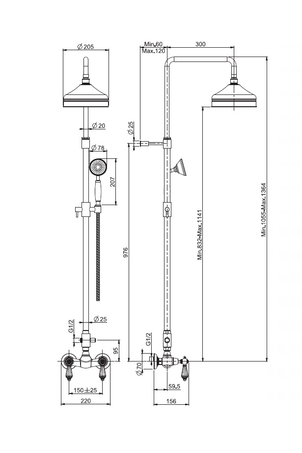 Carlo Frattini Herend Chic Bateria natryskowa z deszczownicą i słuchawka prysznicową Chrom F5405/2CCR