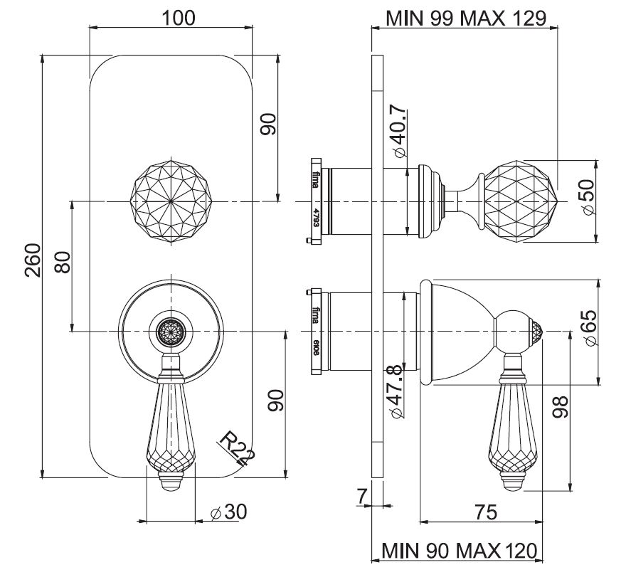 Carlo Frattini Herend Chic Bateria natryskowa podtynkowa z przełącznikiem 2/3 wylotów Chrom F5409X6CCR