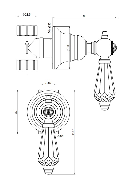średnica rozety: 60 mm