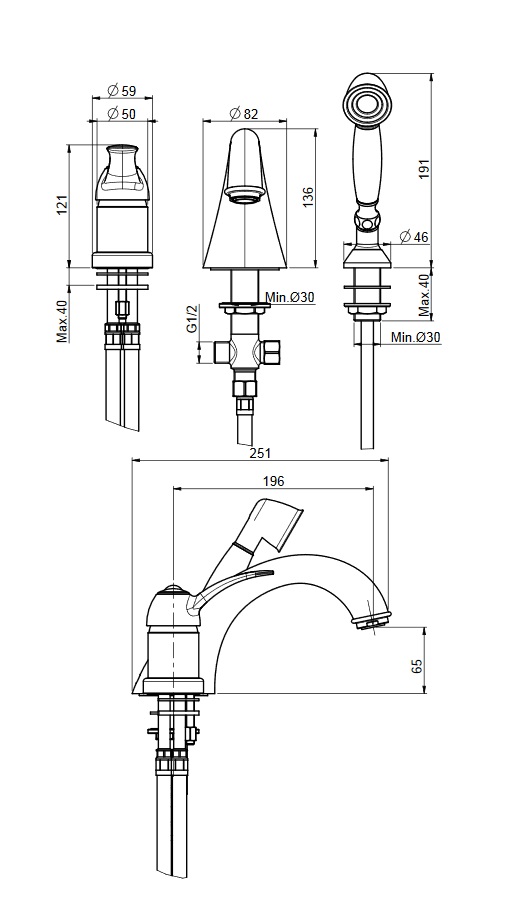 wysięg wylewki: 196 mm