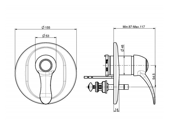 długość uchwytu: 87 - 117 mm