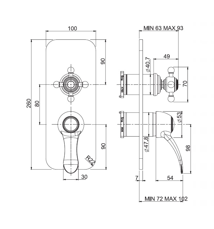 Carlo Frattini Lamp Bateria wannowo-natryskowa podtynkowa z przełącznikiem 2/3 wylotów Chrom F3309X6CR