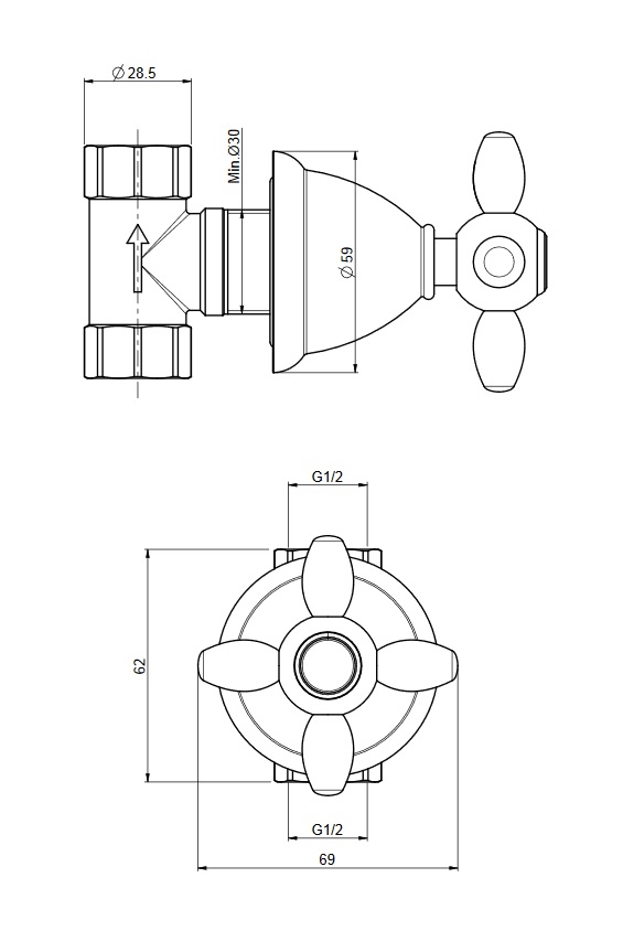 Wymiary: średnica rozety: 59 mm długość części natynkowej: 86 mm