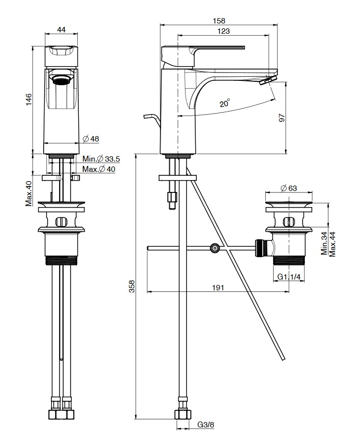 wysięg wylewki: 123 mm