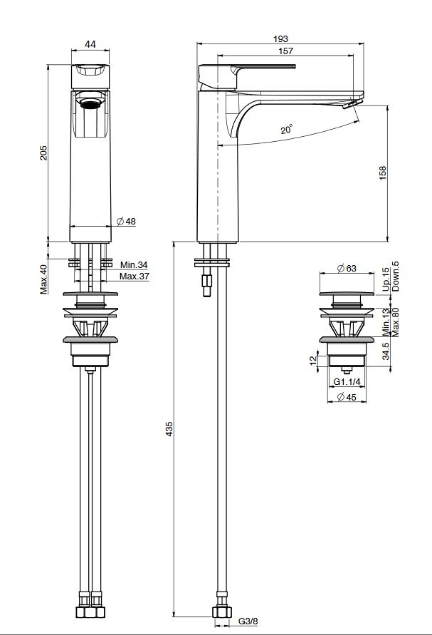 Carlo Frattini Mast Bateria umywalkowa jednootworowa wysoka z korkiem Chrom F3131LCR.ES
