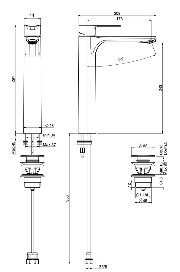 Carlo Frattini Mast Bateria umywalkowa jednootworowa wysoka z korkiem Chrom F3131/HCR.ES