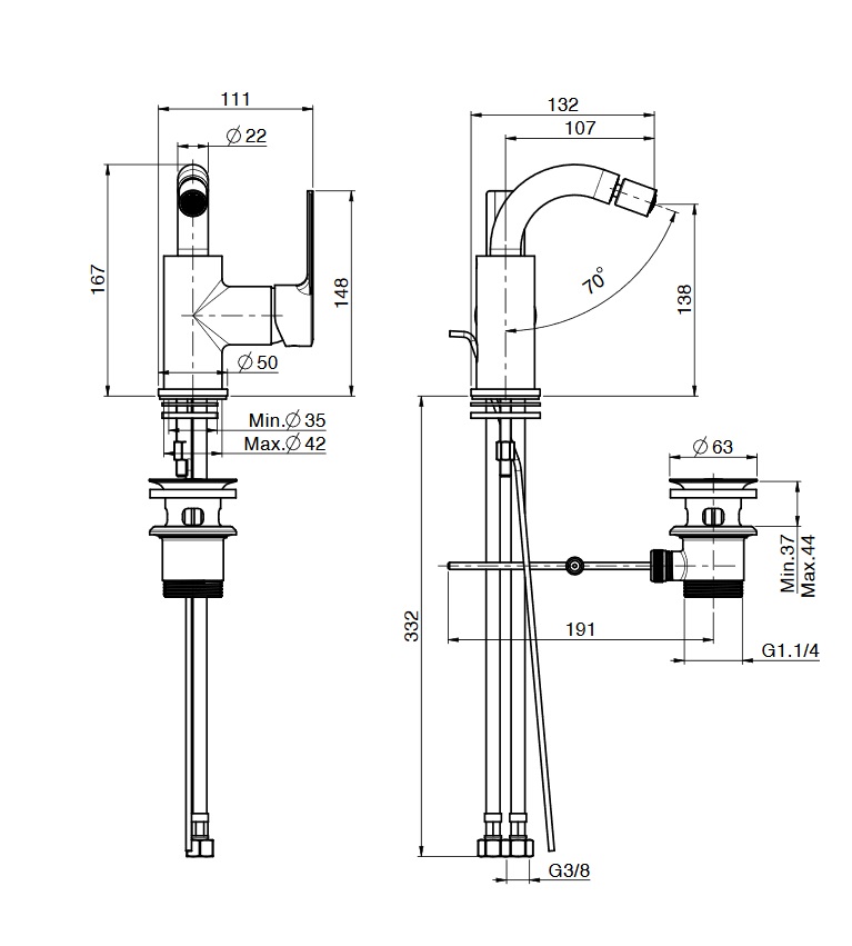Carlo Frattini Mast Bateria bidetowa jednouchwytowa z korkiem automatycznym Chrom F3152CR