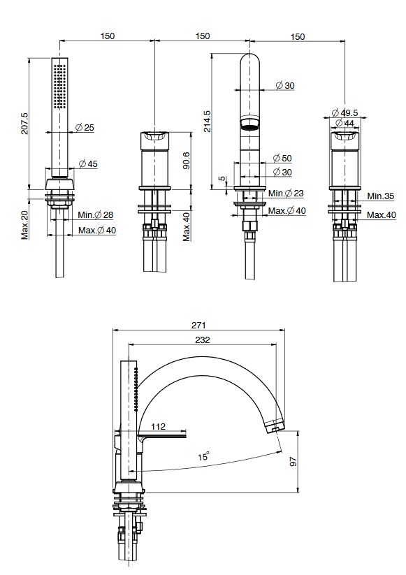 Carlo Frattini Mast Bateria wannowa 4-otworowa Chrom F3144CR
