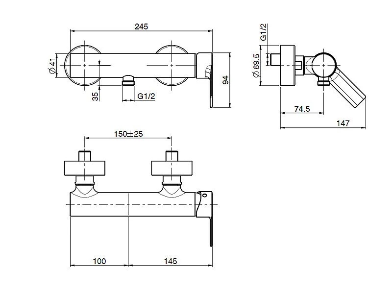 Wymiary: szerokość: 245 mm wysięg przyłącza: 74,5 mm