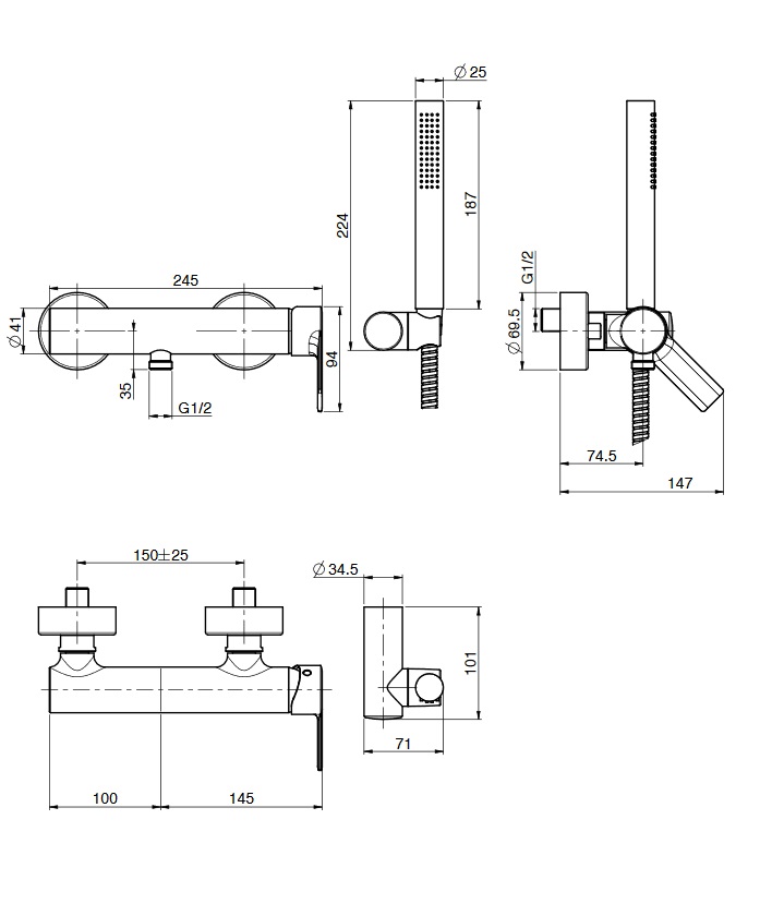 Carlo Frattini Mast Bateria natryskowa ścienna z zestawem natryskowym Chrom F3135CR
