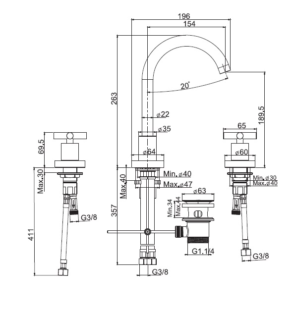 Carlo Frattini Maxima Bateria umywalkowa 3-otworowa z korkiem automatycznym Chrom F5301WCR