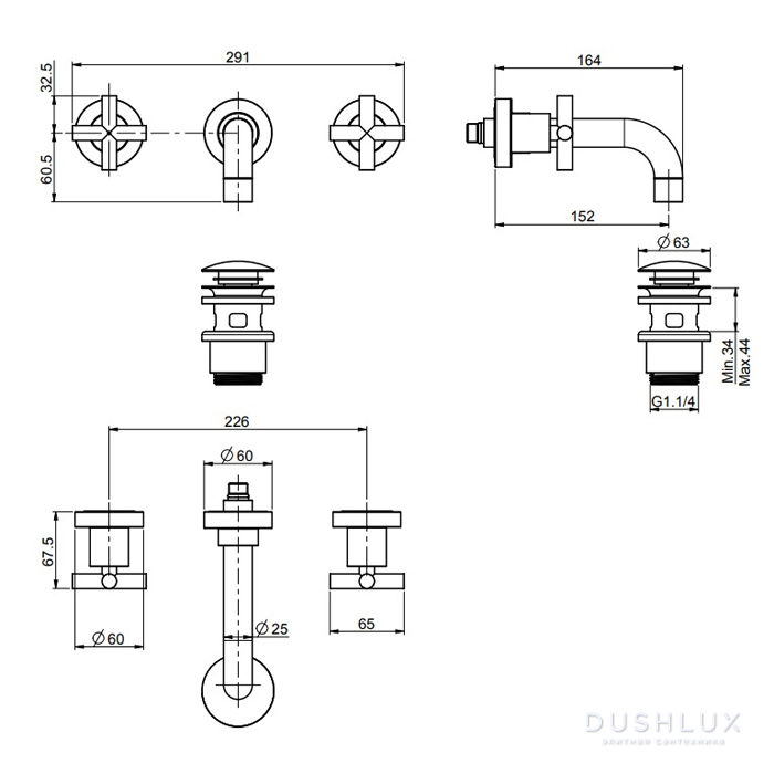 Carlo Frattini Maxima Bateria umywalkowa podtynkowa z korkiem Chrom F5321/5CR