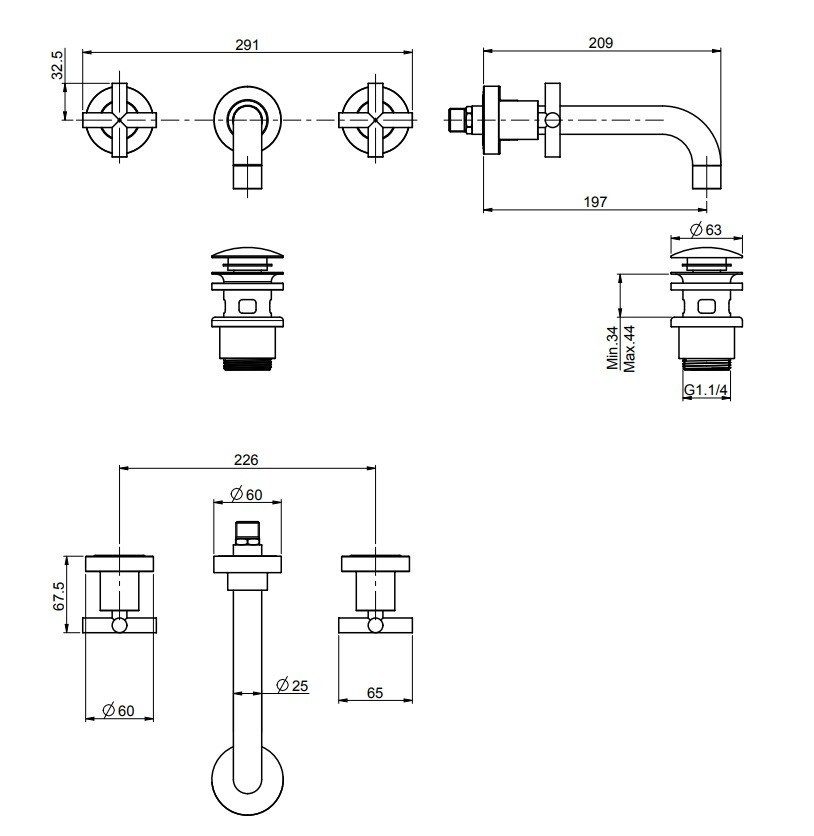 Carlo Frattini Maxima Bateria umywalkowa podtynkowa z korkiem Chrom F5321L/5CR