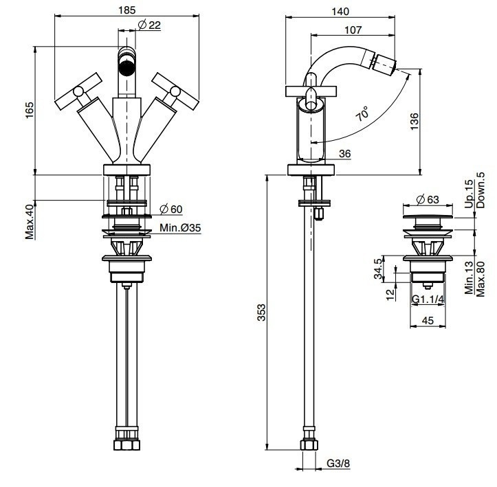 Carlo Frattini Maxima Bateria bidetowa jednootworowa z korkiem Chrom F5312WCR