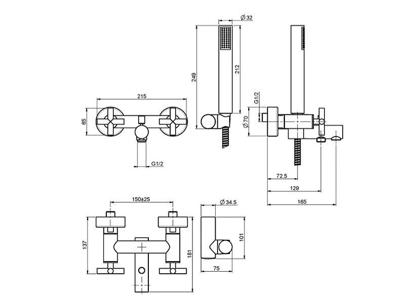 Carlo Frattini Maxima Bateria wannowa ścienna z zestawem natryskowym Chrom F5304CR