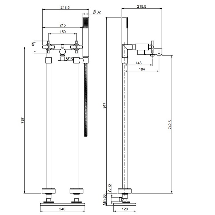Carlo Frattini Maxima Bateria wannowa podłogowa z zestawem natryskowym Chrom F5304/4CR