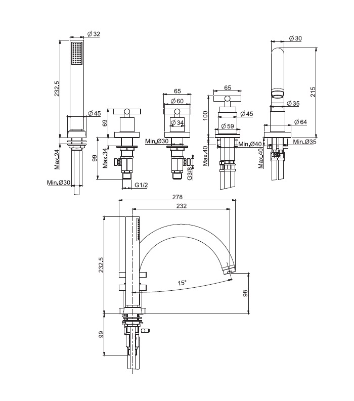 Carlo Frattini Maxima Bateria wannowa 5-otworowa Chrom F5314CR