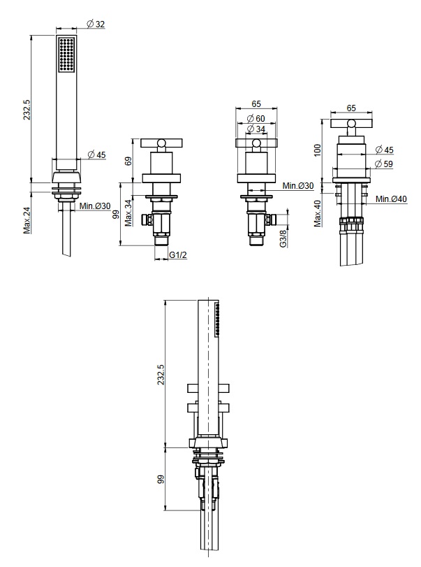 Carlo Frattini Maxima Bateria wannowa 4-otworowa Chrom F5314/2CR