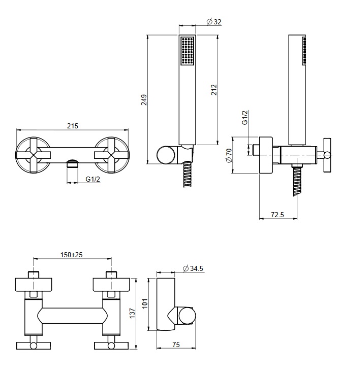 Carlo Frattini Maxima Bateria natryskowa z zestawem natryskowym Chom F5305CR