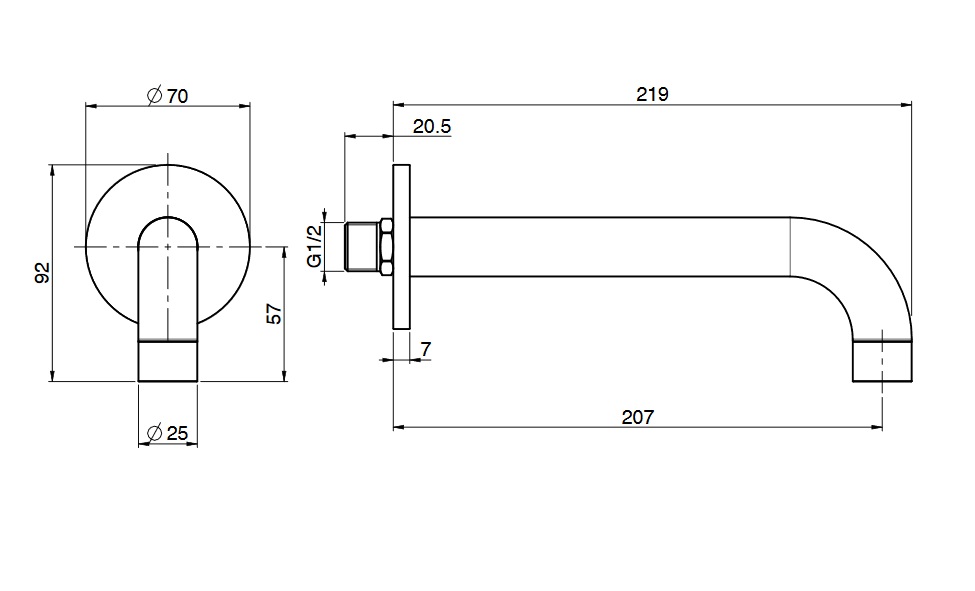 wysięg wylewki: 207 mm